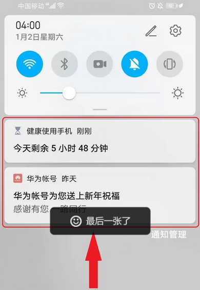 第六步:再次打开通知中心,可以发现应用市场的更新提示已经没有了。