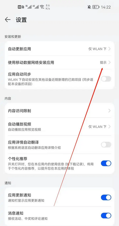 第三步:点击进入使用移动数据网络安装应用,选择关闭即可。