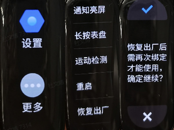 2、可以在手环端进行恢复出厂设置,在手环的设置系统中选择恢复出厂。