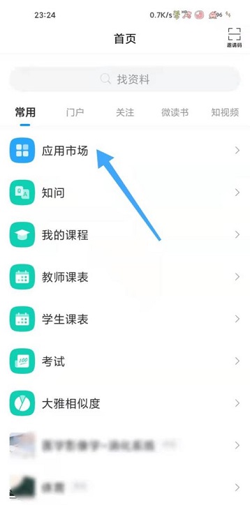 第二步:然后在首页找到应用市场,点击进入(如图所示)。
