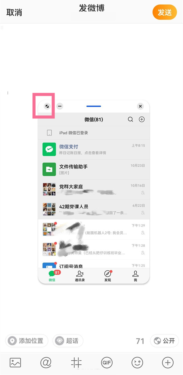 2、在微信悬浮窗口点击全屏图标即可恢复。