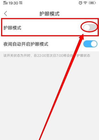 第六步:点击“护眼模式”左侧的按钮,即可开启护眼模式(如图所示)。