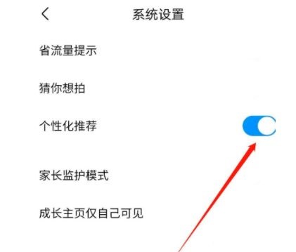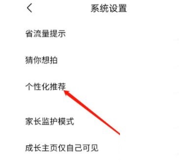 第五步:在“系统设置”页面,点击“个性化推荐”(如图所示)。
