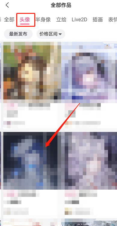 3、接着选择头像类别,选择喜欢的画风、合适的价位的头像点击进入;