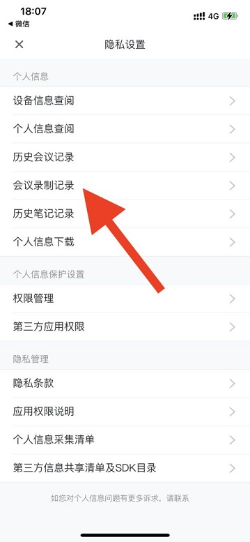第四步:进入隐私设置,找到会议录制记录,进行查看即可(如图所示)。