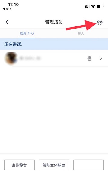 第四步:进入管理成员页面后,点击右上角的设置图标(如图所示)。