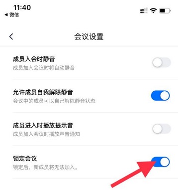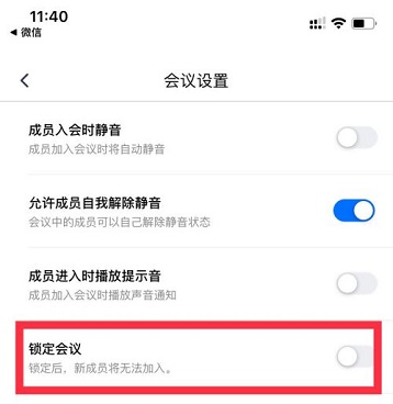 第五步:在会议设置中点击“锁定会议”(如图所示)。