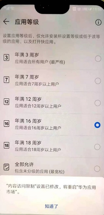 第八步:最后点击知道了,华为应用市场自动重启,就设置完成了(如图所示)。