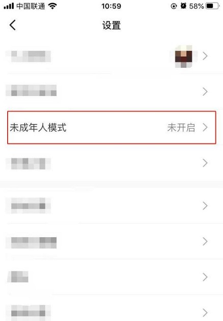 第五步:点击未成年人模式(如图所示)。