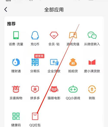 4、点击QQ红包选择即可(如图所示)。