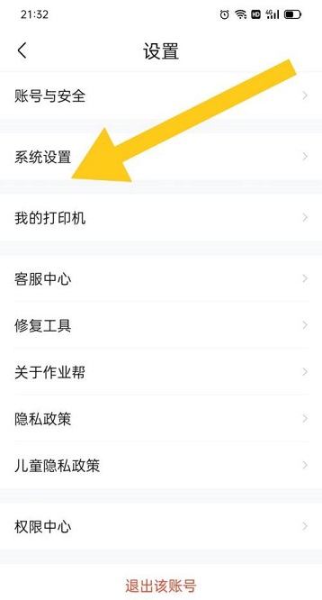 第四步:在“设置”页面,点击“系统设置”(如图所示)。