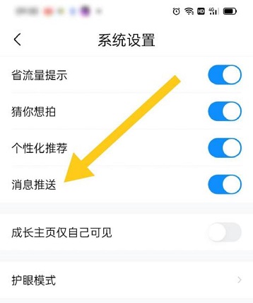 第五步:在“系统设置”页面,点击“消息推送”,开启即可(如图所示)。