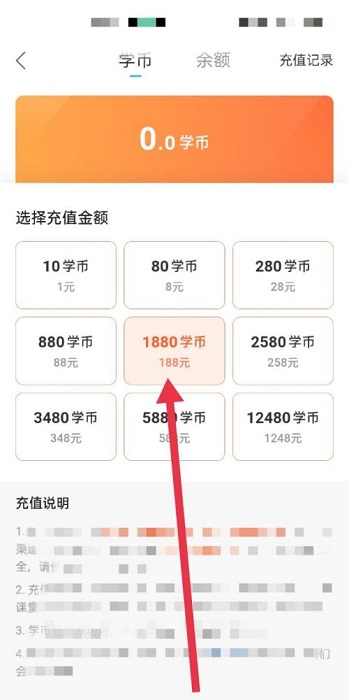 第三步:点击选择要充值的数量(如图所示)。