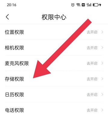 第五步:在“权限中心”页面,点击“存储权限”,开启即可(如图所示)。