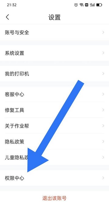第四步:在“设置”页面,点击“权限中心”(如图所示)。