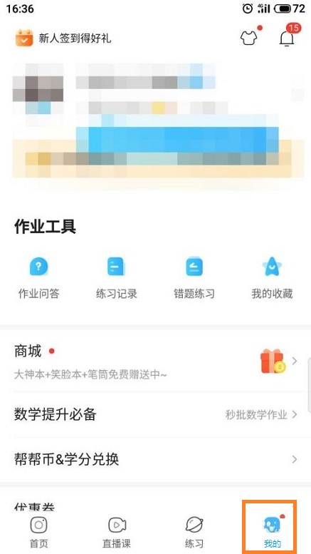 第二步:进入作业帮,点击“我的”(如图所示);