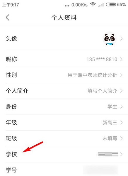 第五步:在个人资料页面,点击“学校”(如图所示);