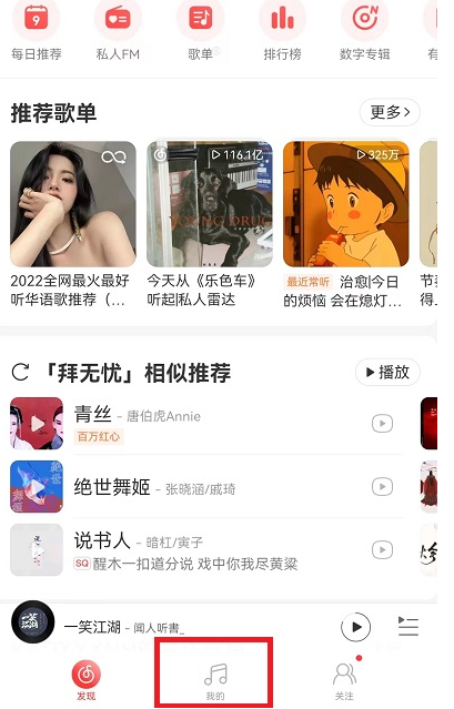 1、打开网易云音乐,点击下方的【我的】进入到自己的个人界面;