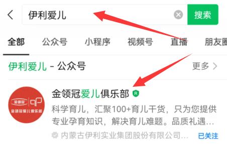 2、然后在其中搜索并打开“金领冠爱儿俱乐部”