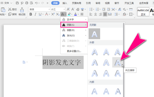 WPS Office怎么添加阴影发光效果