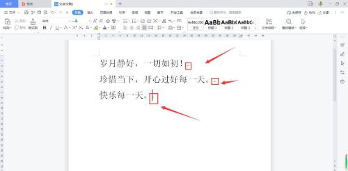 第五步:放大文本后可以发现每段文字后面的小箭头。