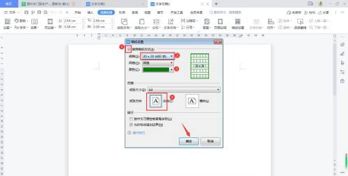 第五步:在稿纸设置页面,勾选“使用稿纸方式”设置规格,颜色默认绿色,纸张纵向,并确定(如图所示)。