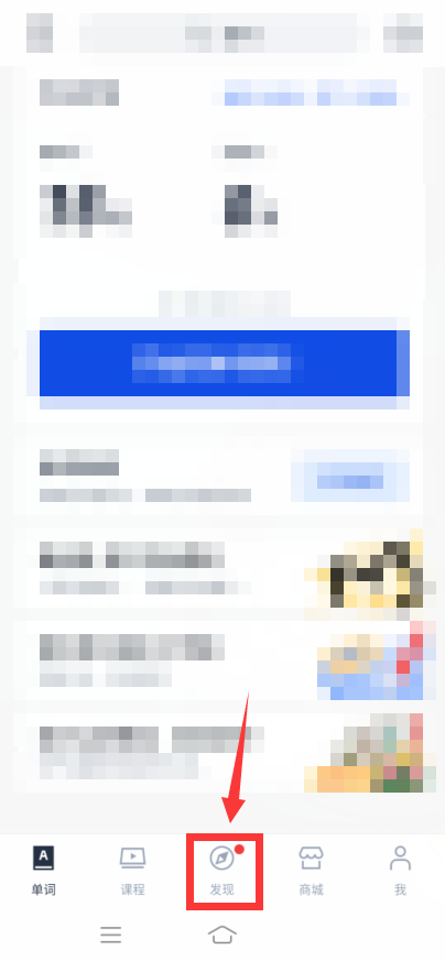 1、首先我们登录进入百词斩app,到达单词界面,点击底部下方发现;