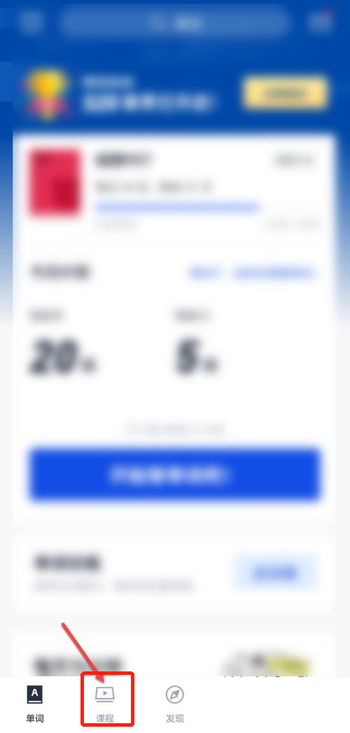 1、首先打开手机上的百词斩,在首页页面,点击下方的课程。