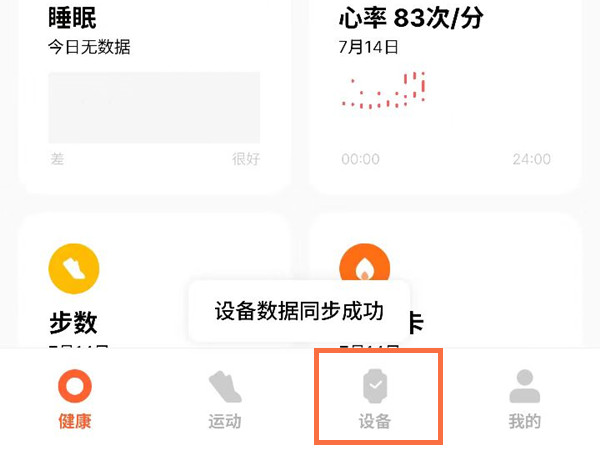 1、打开小米运动健康app,点击底部的设备。