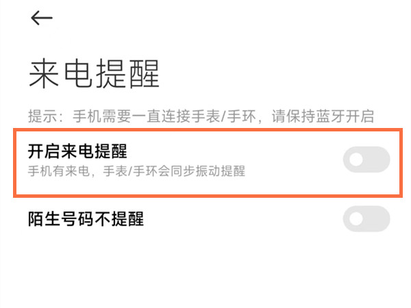 2、将开启来电提醒的开关开启即可。
