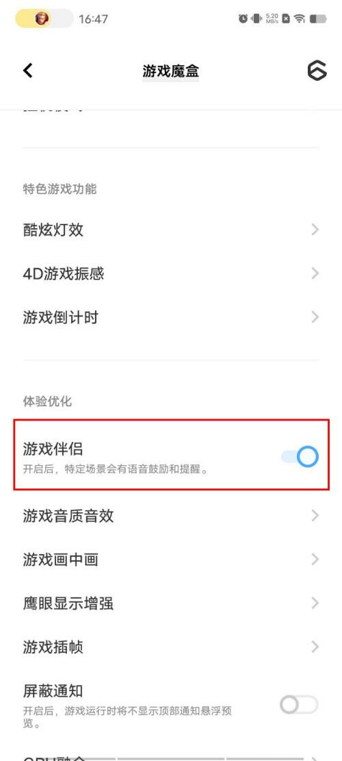 2、将【游戏伴侣】右侧的开关关闭即可。