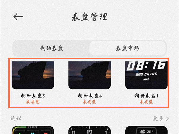 2、点击【照片表盘】,选择需要使用的样式。
