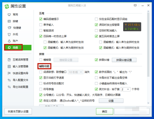 第三步:依次找到【高级】-【辅助功能】,在下面【符号表情】前面的小方框打勾,再点击下面的【确定】按钮即可。