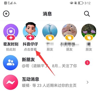 1、打开抖音app,更新到最新版本,点击下方【消息】按钮,就可以看到抖音仔仔。