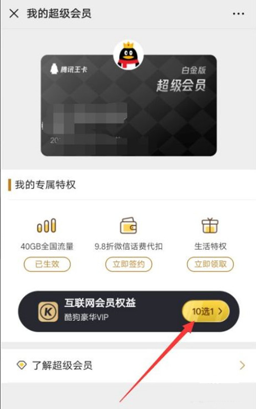2、点击【互联网会员权益】。