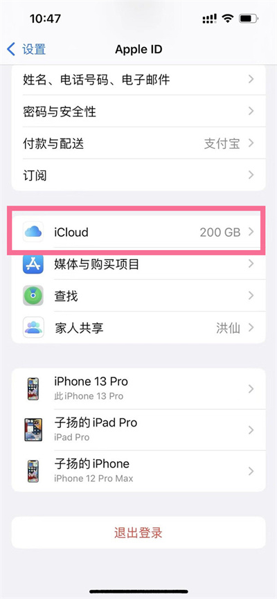 2、点击【iCloud】选项。