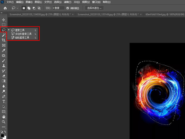 使用套索工具截图:使用ps打开图片,找到并点击套索工具,按【ctrl+j】复制图层即可截图想要的区域。