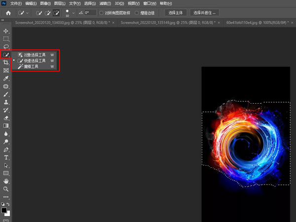 使用选择工具截图:使用ps打开图片,找到并点击选择工具,按【ctrl+j】复制图层即可截图想要的区域。