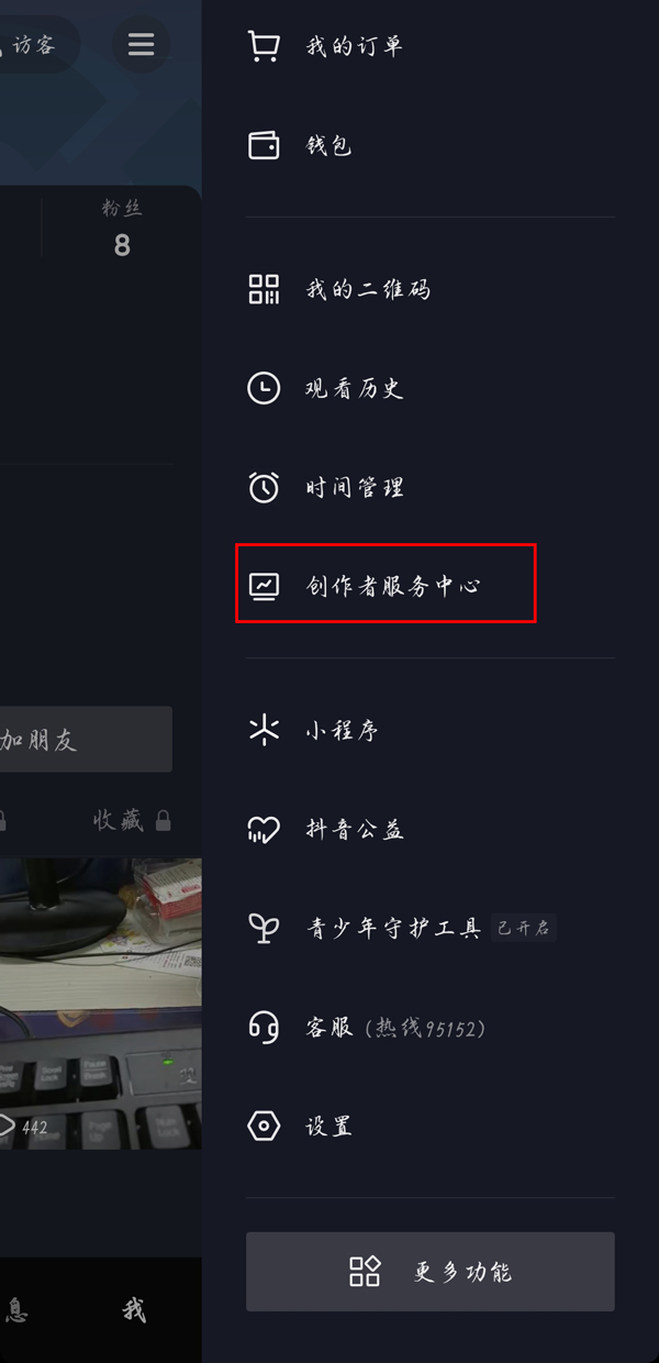 1、打开抖音,点击【我的】,点击右上角三横图标,点击【创作者中心】。