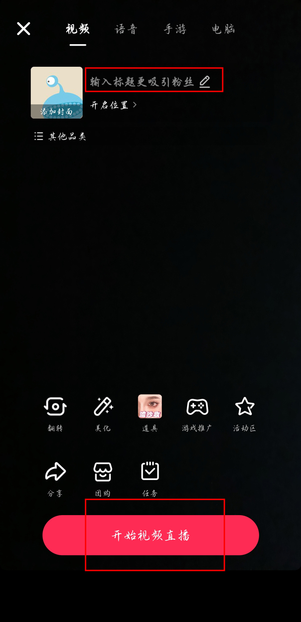 抖音直播标题在开始视频直播界面进行设置,设置抖音直播标题步骤如下:
