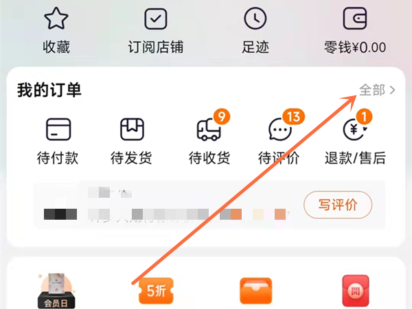1、打开淘宝app,在个人中心界面点击我的订单。