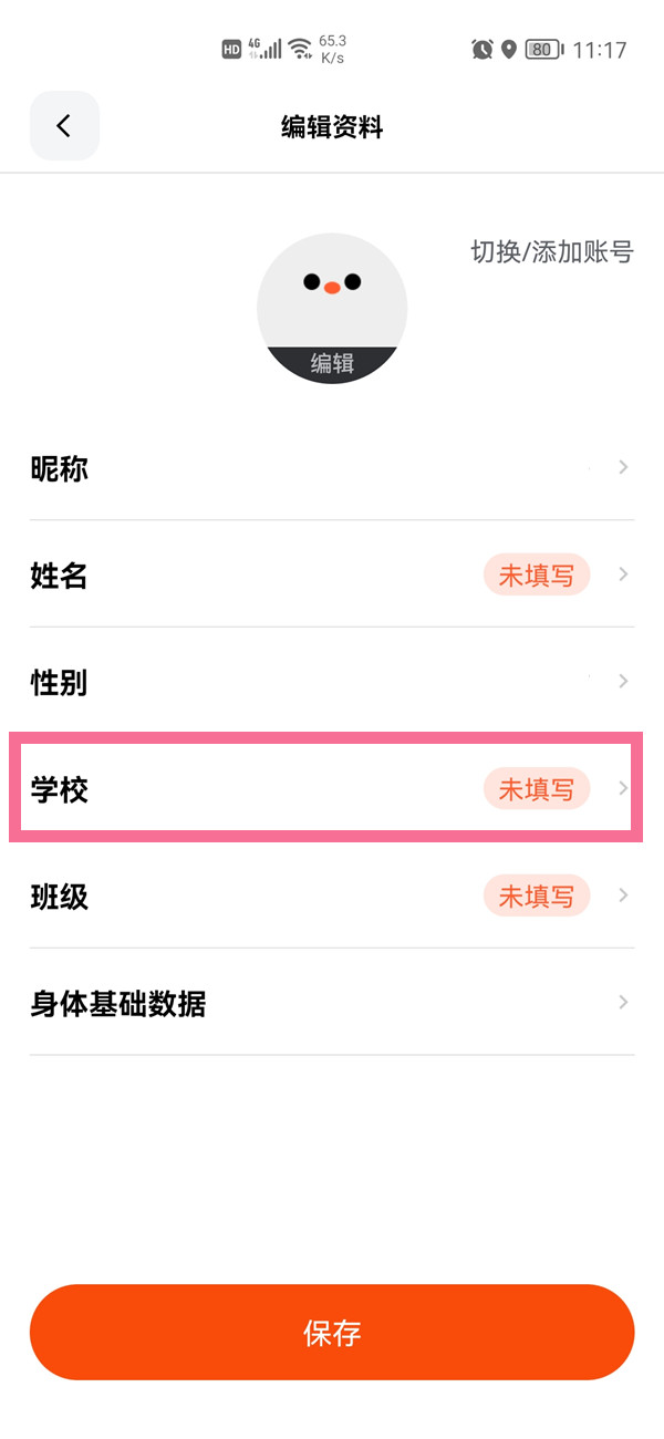 2、点击【学校】,选择学校后即可填写年级和班级。
