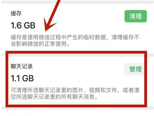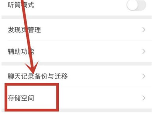 2、点击页面下方的存储空间选项,点击聊天记录进入可以查看接收的微信文件。