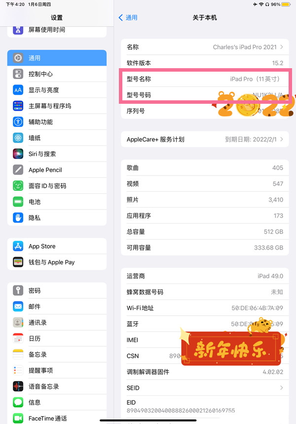 苹果平板查看方法:点击平板设置-通用-关于本机,即可查看平板的型号名称和型号号码。