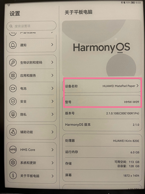 华为平板查看方法:点击平板设置-关于平板,即可查看平板的型号和设备名称。