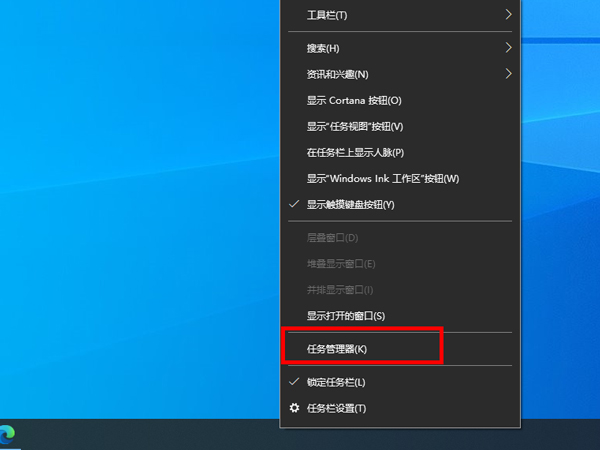 1、鼠标右键单击任务栏空白处,选择【任务管理器】。