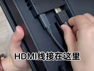 2、将电源线插头插入插孔后,将HDMI线连上电脑。