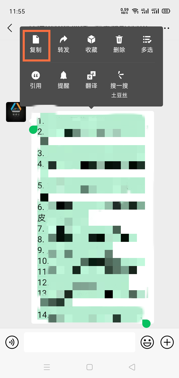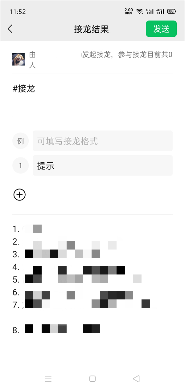 3、将复制的输入粘贴到备注,在接龙里将备注数据按顺序剪切粘贴后,点击发送即可。