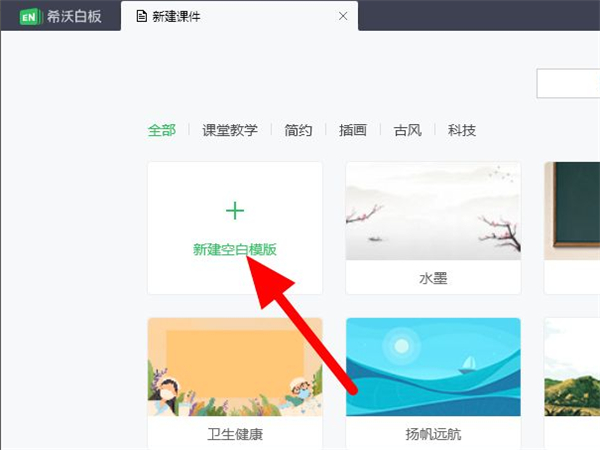 1、在希沃白板首页,点击新建课件,点击新建空白课件,点击多媒体。