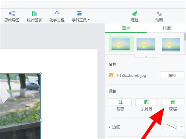 2、找到要插入的图片,选中图片,点击插入,在左侧属性栏,点击蒙层即可。